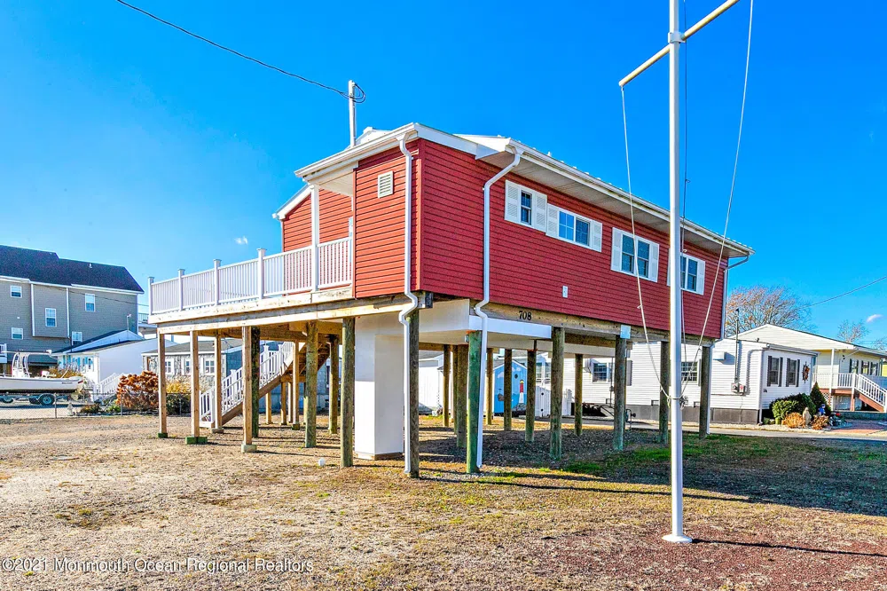 Remodeled and Raised Expanded Ranch in desirable Tuckerton Beach area of homes! 2 bedroom, 1½ baths, all redone to the studs. Inside, the house was taken to the studs, and re-built: A brand new kitchen with granite countertops, nice white cabinets, and stainless/black appliances. The open floor plan makes it sunny and bright with all new electric, plumbing, new baths, new floors, gas heat and AC and 2 sliders to the a large L -shaped deck off the back plus a separate laundry and upper storage shed and metal roof. There is a large Rheem HWH, gas heat, central air with public water and sewer and—great area of homes. Water-views from the back deck and bedrooms. Take a walk to a great restaurant, and the nearby Waterfront Park. This home is close to marinas to keep your boat and with a larger than average lot, where you can store all your water toys--add your own garages underneath in time and everything else has been finished for you. Minutes from LBI, 25 minutes to the Casinos and shopping in Atlantic City, 1 hour from Philadelphia and 2 hours to Manhattan!